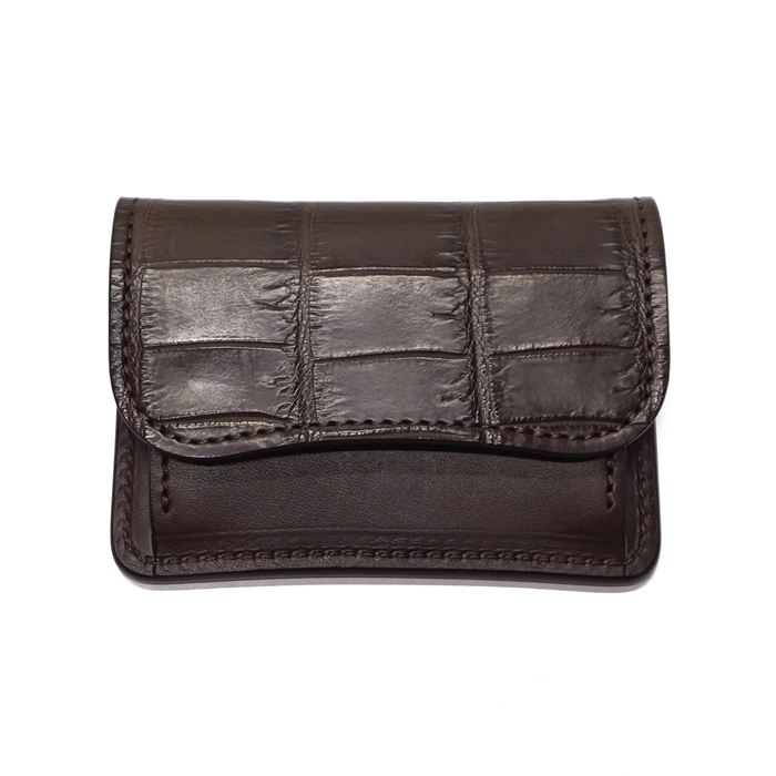 WILD SWANS(ワイルドスワンズ)TONGUE(タング)マルチコインケース/チョコ"クロコダイル"×ダークブラウン"イングリッシュブライドル" [TONGUE-CRC-EB]