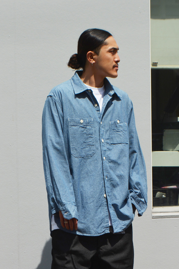素材にはワークシャツらしいコットンシャンブレーを採用。