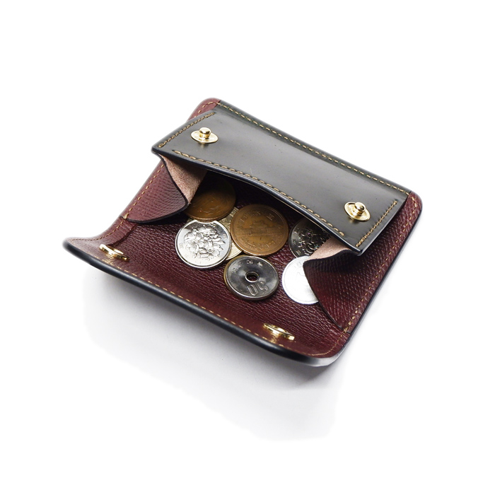 WILD SWANS(ワイルドスワンズ)TONGUE(タング)マルチコインケース/ブラック"シェルコードバン"×バーガンディ"型押しイングリッシュブライドル" [SP-TONGUE-HC-EEB]