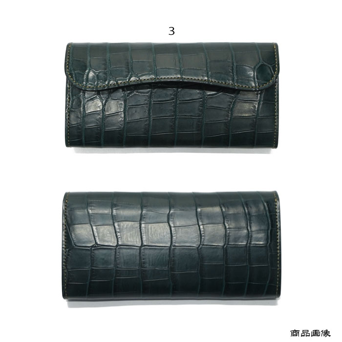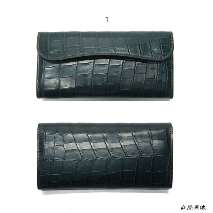 WILD SWANS(ワイルドスワンズ)WAVE(ウェイブ)ロングウォレット/グリーン"クロコダイル"×ブラック"イングリッシュブライドル" [SP-WAVE-CRC-EB]