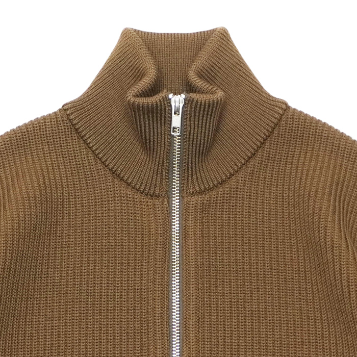 Yonetomi NEW BASIC(ヨネトミニューベーシック)EX Fine Wool Rib Knit Blouson(エクストラファインウールニットブルゾン)/ Brown(ブラウン) [30-95-254-026-43-BR]
