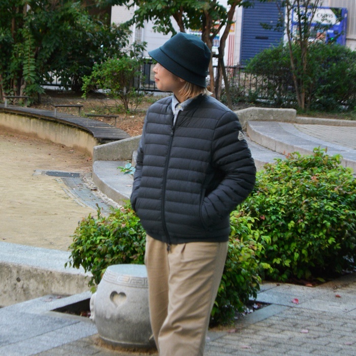 | 素材 | 表地:ポリエステル95% ポリウレタン5%・裏地:ナイロン100%・リブ:ポリエステル96% ポリウレタン4%・詰物:ダウン90% フェザー10%(850フィルパワー,フレンチダックダウン) |