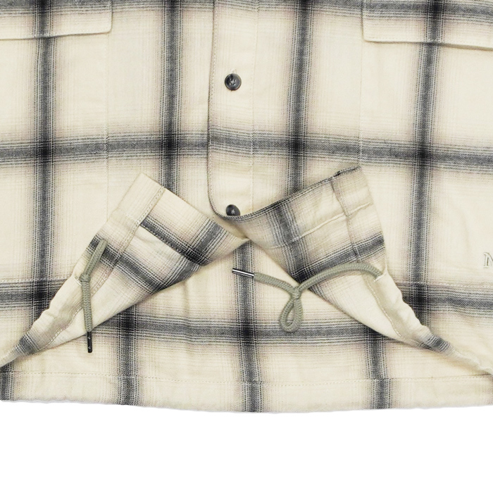 裾にあるドローコードで絞めることで丸みのあるシルエットが生まれ、シャツジャケットとしても着用いただけます。
