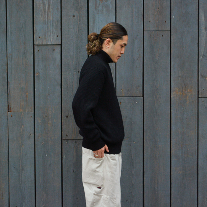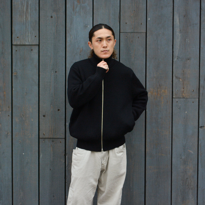 高品質の防縮ウールをしっかりと編み込んだ畦編みの”ドライバーズニット・ブルゾン”は