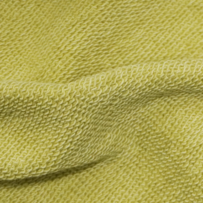 国内屈指の縫製工場にて、空気を含ませながらゆっくりと編み立てられるスウェット生地は