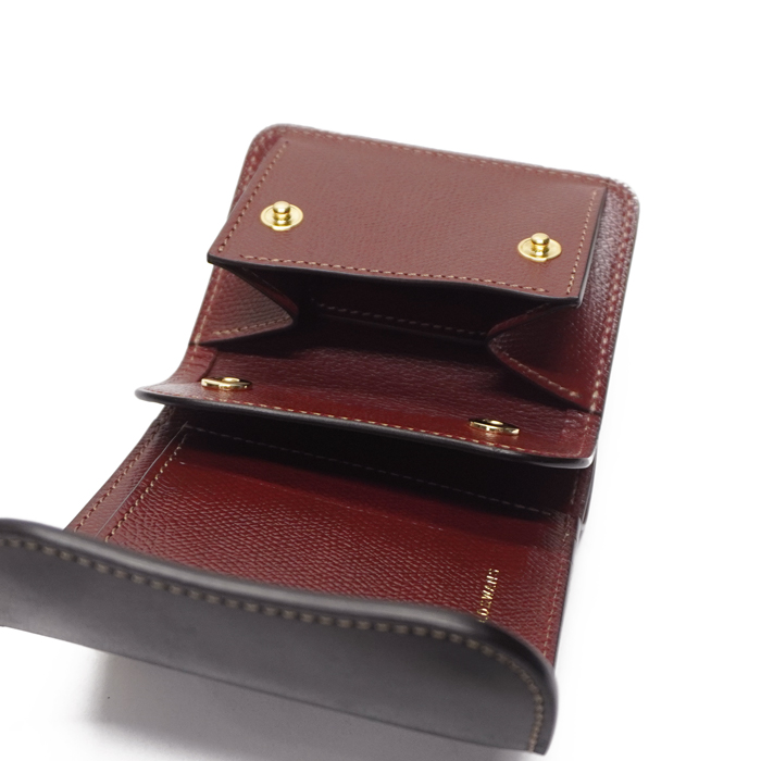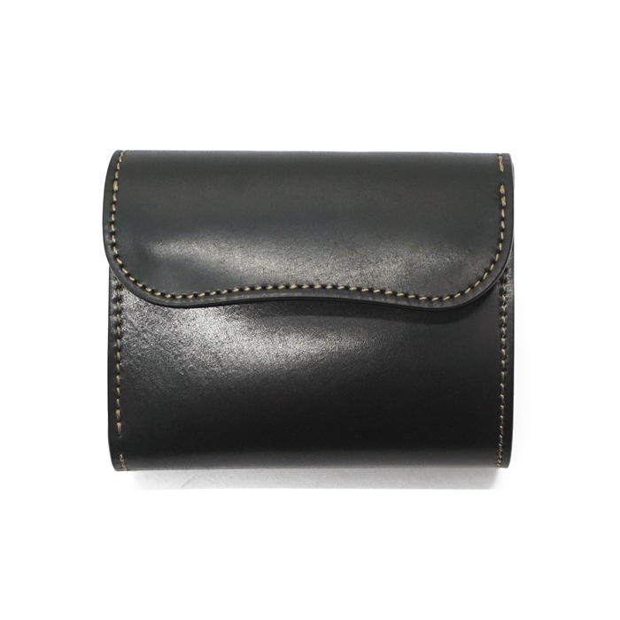 WILD SWANS(ワイルドスワンズ)ENO(イーノ)ミニ3つ折りウォレット/ブラック"シェルコードバン"×バーガンディ"型押しサドルプルアップ" [SP-ENO-HC-ESD]