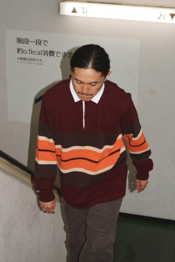 BARBARIAN(バーバリアン)Heavy Weight Rugby Collar Shirt(ヘビーウェイト ラグビーカラーシャツ)"BOLD MOUNTAINEER" / Harvard×Brown×Beige×Burnt Orange(ハーバード×ブラウン×ベージュ×B,オレンジ) [29-JBSS-XFE04]