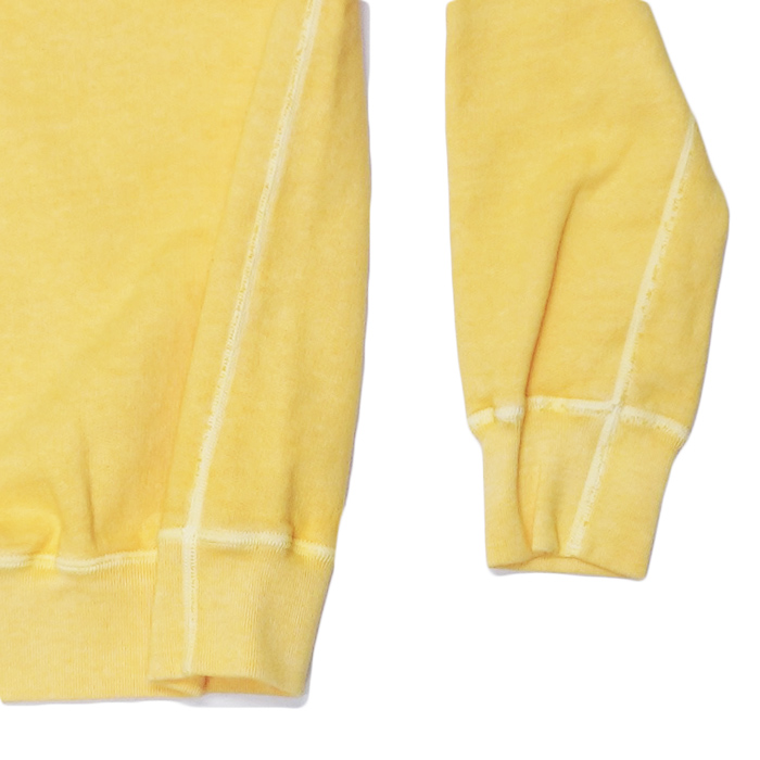 スウェット生地特有の凹凸に色の濃淡が際立つ顔料染め(ピグメントダイ)を施されているため、