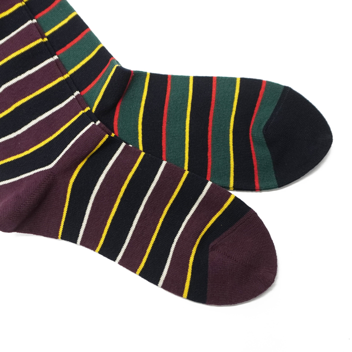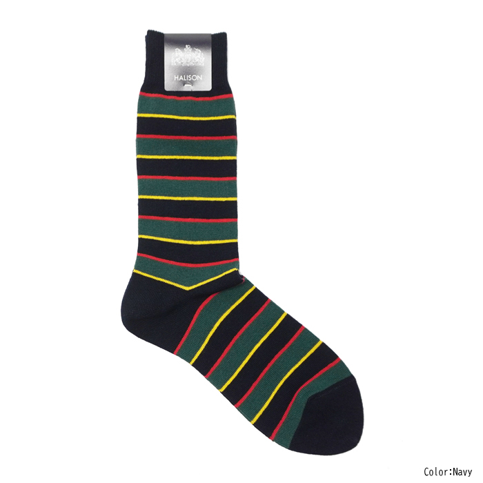 HALISON(ハリソン)リサイクルコットアイビーボーダーソックス / Navy(ネイビー)・Wine(ワイン)※3足までメール便発送可 [2-525451-B-A]