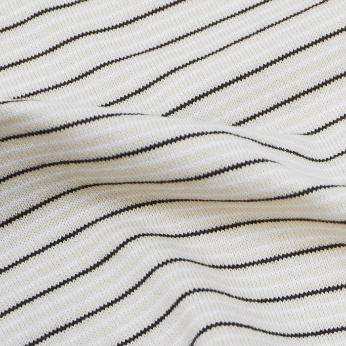 ピッチの細いボーダー柄をはじめ、やや肉厚ながらも柔らかかく滑らかな着心地は