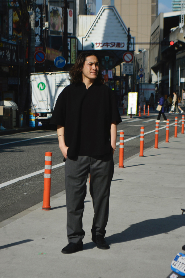 程良く開いたネック部分にラウンドカットされたサイドスリット、後ろ着丈はやや長めに設定され