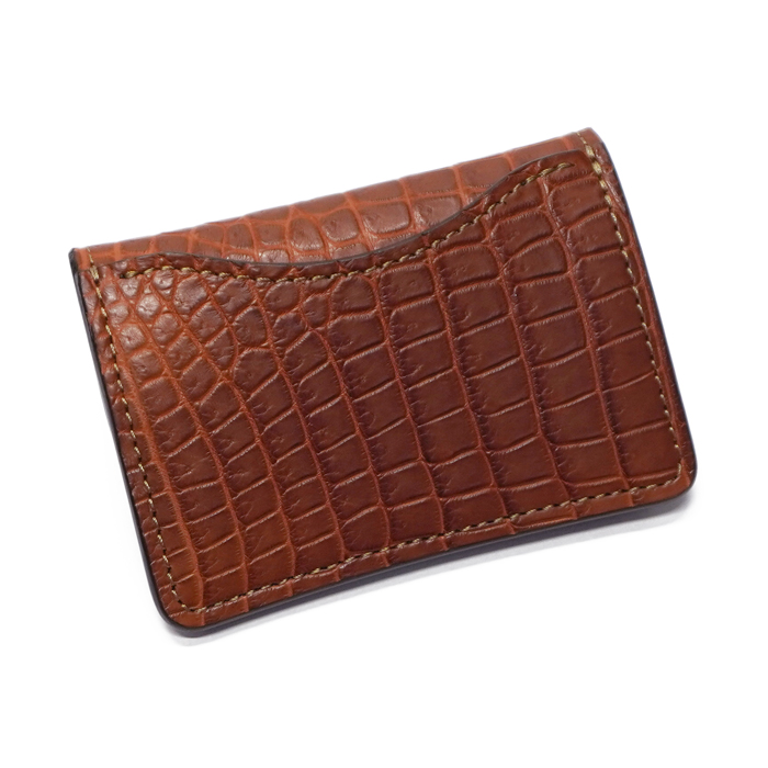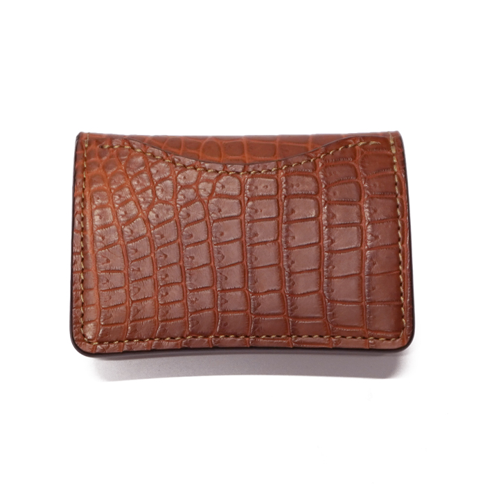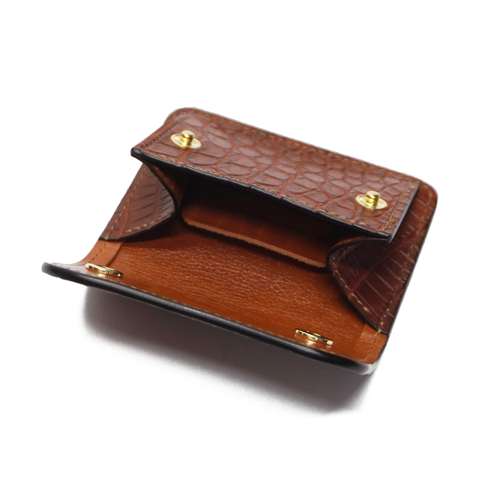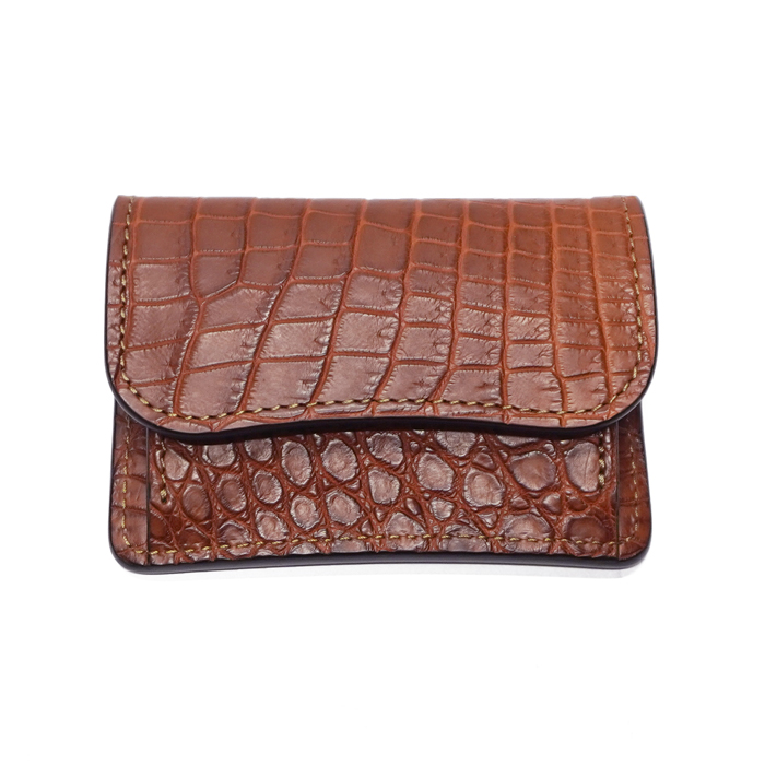 外装に高級レザーとして知られるクロコダイルの中でも最上級と名高いポロサス、内装にベルギー<マシュア社>製"サドルプルアップ"を使用した、定番マルチコインケース「TONGUE(タング)」です。
