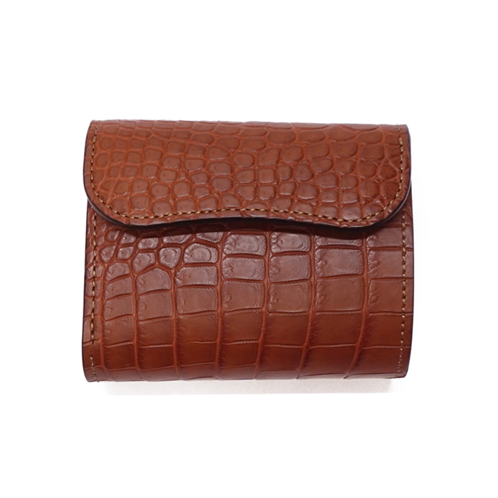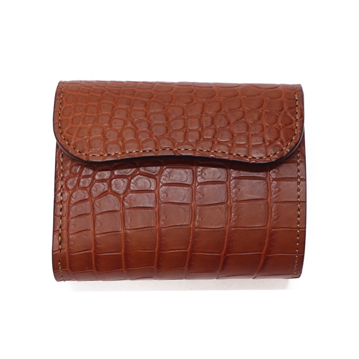 外装に高級レザーとして知られるクロコダイルの中でも最上級と名高いポロサス、内装にベルギー<マシュア社>製"サドルプルアップ"を使用した、オールインワンタイプで多機能、コンパクトながらも収納力に優れた3つ折り財布「Eno(イーノ)」です。