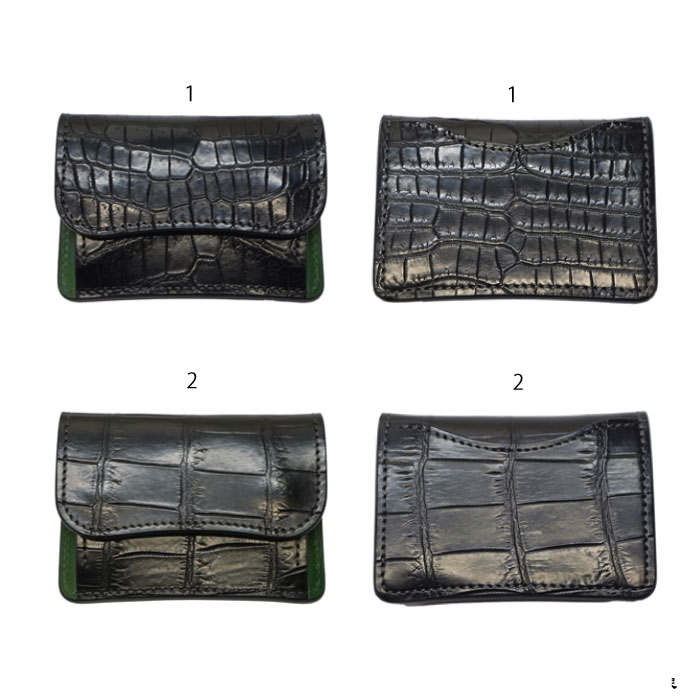 WILD SWANS(ワイルドスワンズ)TONGUE(タング)マルチコインケース/ブラック"クロコダイル"×グリーン"ブッテーロ" [SP-TONGUE-FP-CRC-BT]