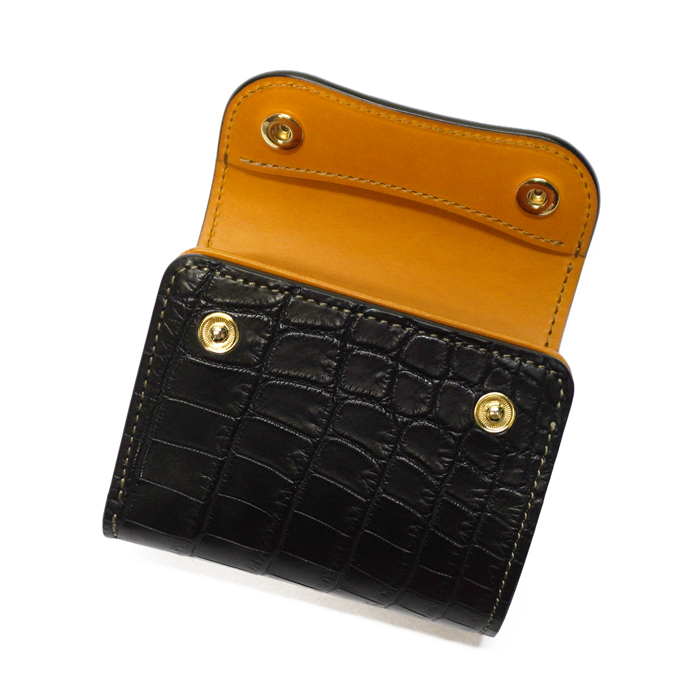 WILD SWANS(ワイルドスワンズ)ENO(イーノ)ミニ3つ折りウォレット/ブラック"クロコダイル"×イエロー"ブッテーロ" [SP-ENO-CRC-BT]