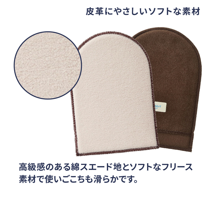皮革にやさしいソフトな素材を使用しており、ナチュラルなツヤ(光沢)を出すことができます。