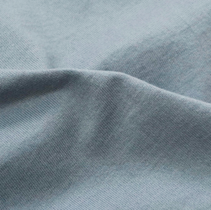素材には空気紡績のハイブリットバージョンにて紡ぎ出された糸を採用。