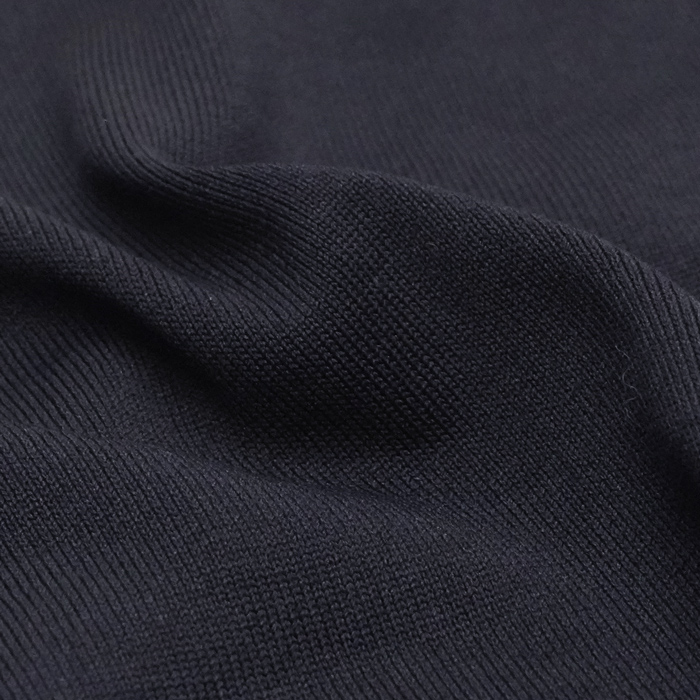 強撚糸で度詰め編みすることによって、タフで独特の凹凸感のある表情に