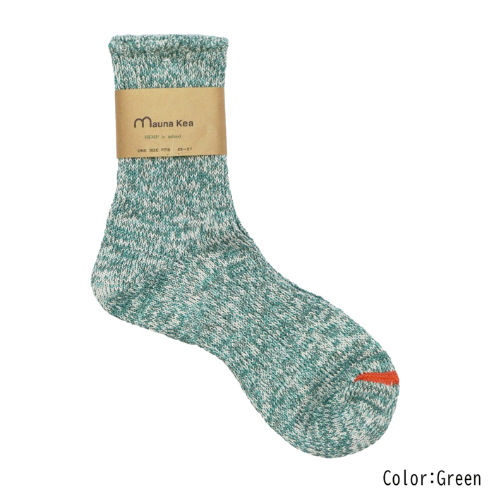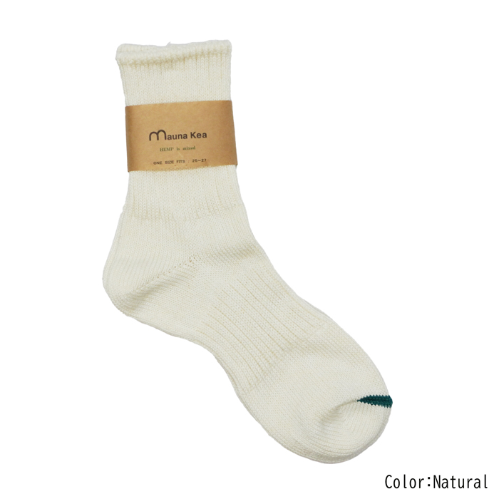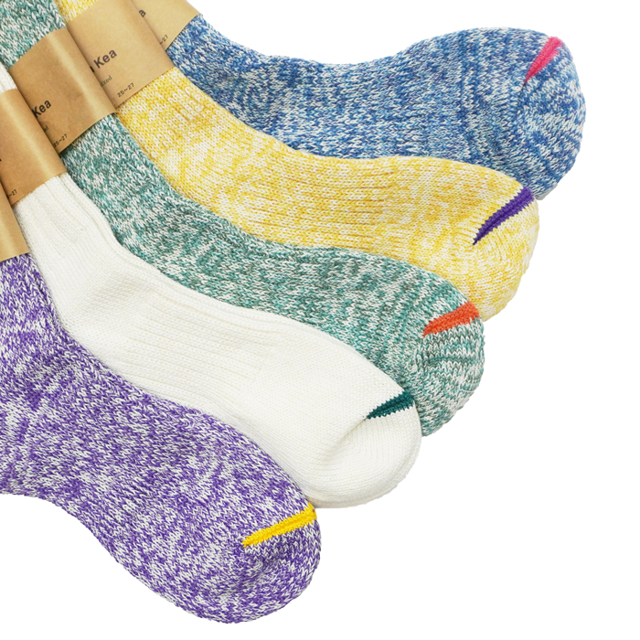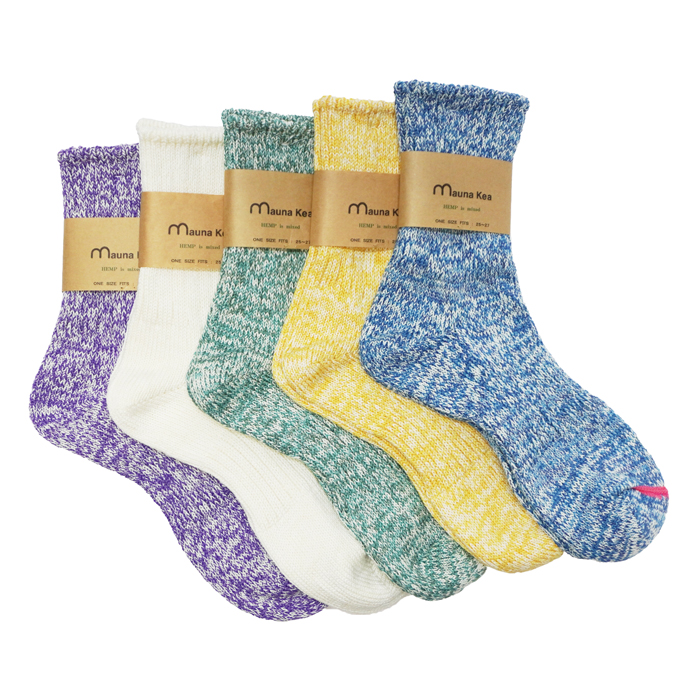マウナケアならではのざっくりとした雰囲気と、ポップなカラーリングが魅力の上質なソックスは、