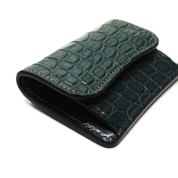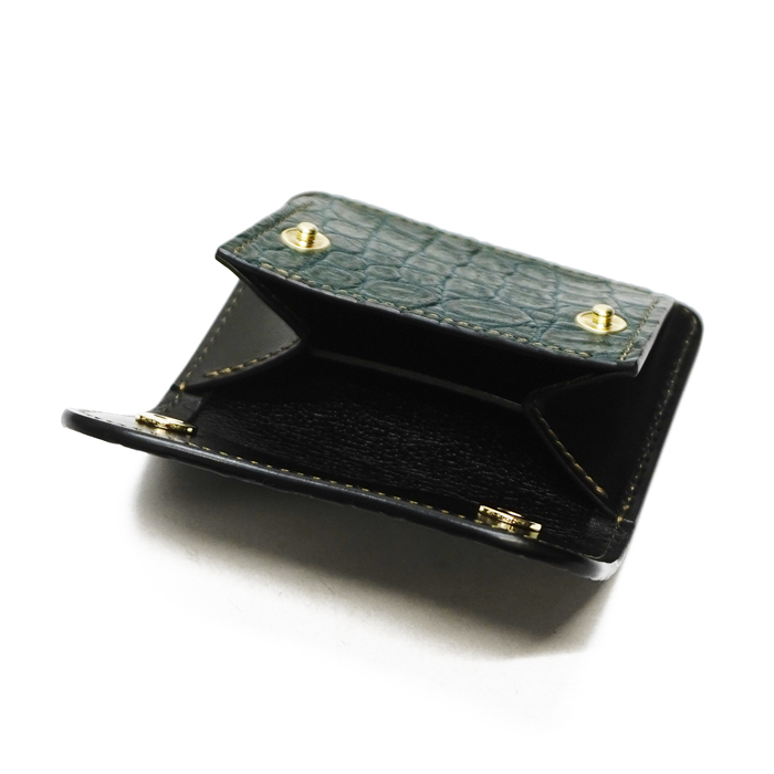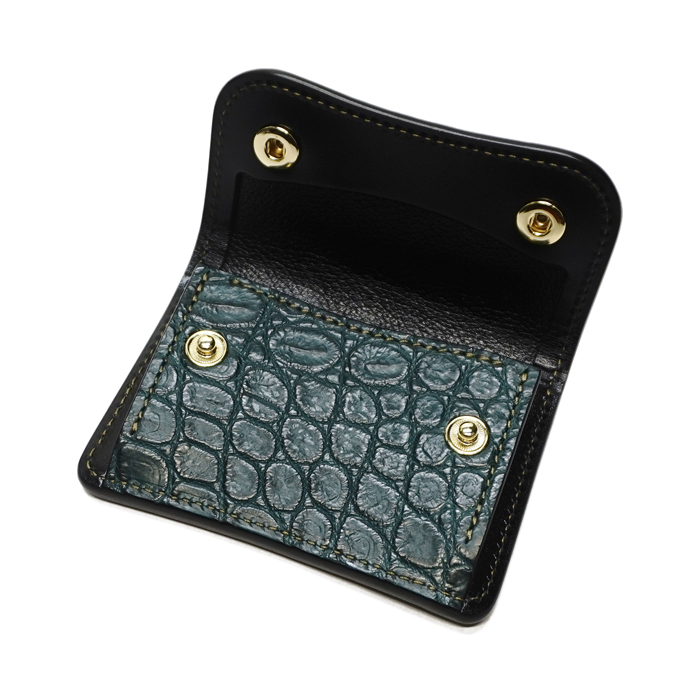 WILD SWANS(ワイルドスワンズ)TONGUE(タング)マルチコインケース/グリーン"クロコダイル"×ブラック"サドルプルアップ" [SP-TONGUE-FP-CRC-SD]