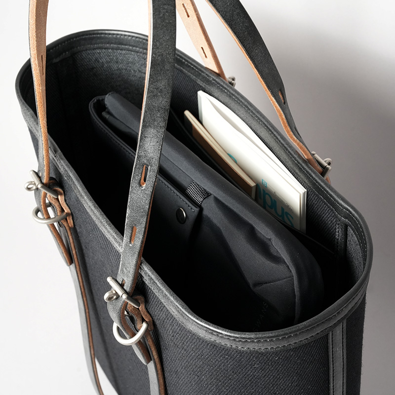 WILD SWANS(ワイルドスワンズ)UP-RIGHT(アップライト)トートバッグ"綿麻ヘビーツイル×フルグレインブライドルレザー"/Black(ブラック) [UPRIGHT-BK]