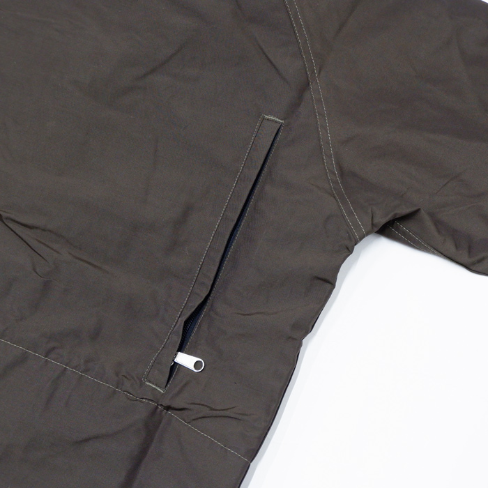 背面マップポケット、調整マチ付きのベルクロカフス、素材を含め、撥水性・防風性・耐久性など機能性に優れ、
