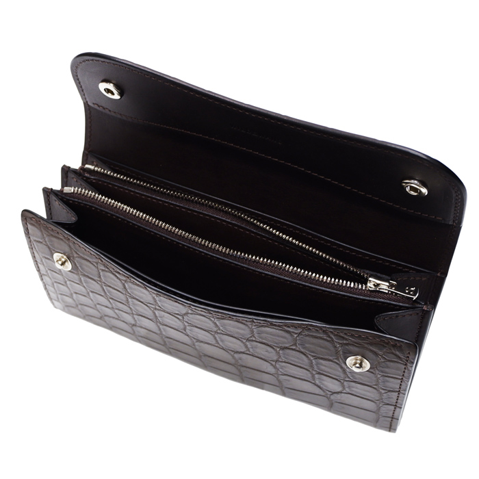 WILD SWANS(ワイルドスワンズ)WAVE(ウェイブ)ロングウォレット/チョコ"クロコダイル"×ダークブラウン"イングリッシュブライドル" [WAVE-CRC-EB]