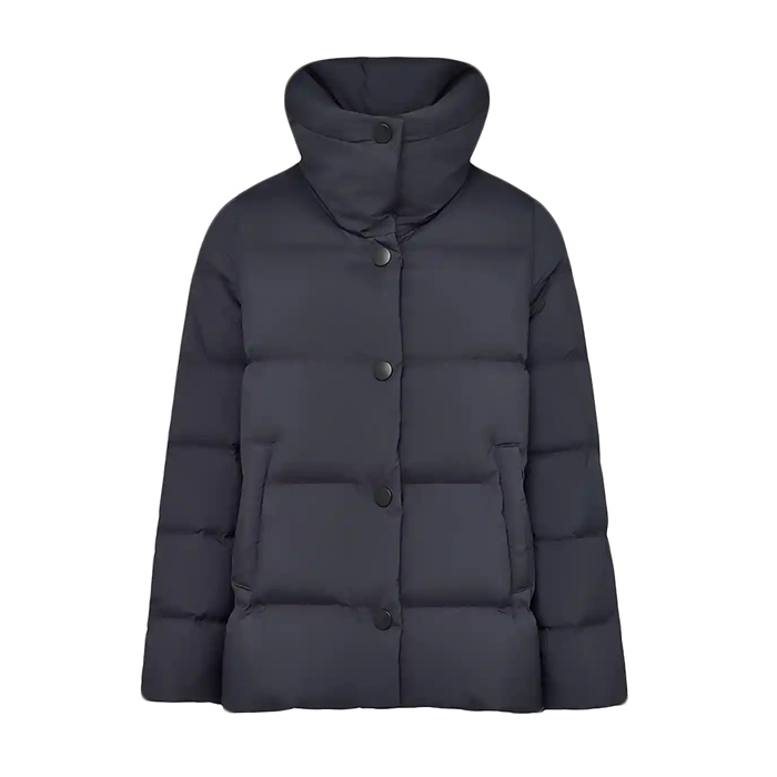 また、ボリューミーで目を惹くデザインの襟元にも、上質なフレンチダックダウンをしっかりと詰め込むことで
