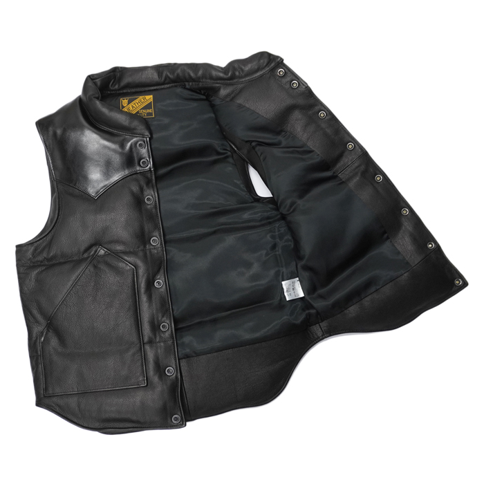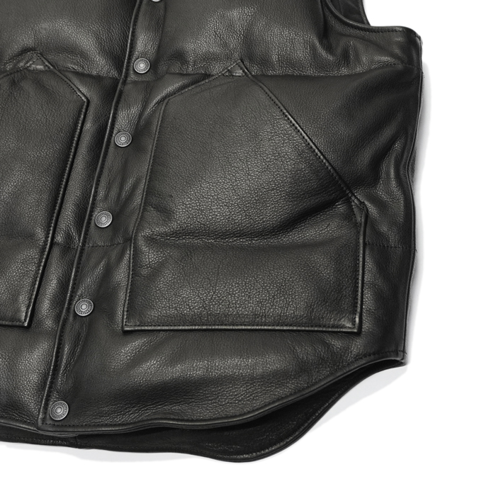 Y'2 LEATHER(ワイツーレザー)STEER OIL×HORSE HIDE DOWN VEST(ステアオイル×ホースハイドダウンベスト)/Black×Black(ブラック×ブラック) [22-SV-01]