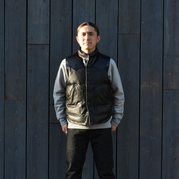ブラックを基調とした、シックなデザインが目を惹く新作「STEER OIL×HORSE HIDE DOWN VEST」です。