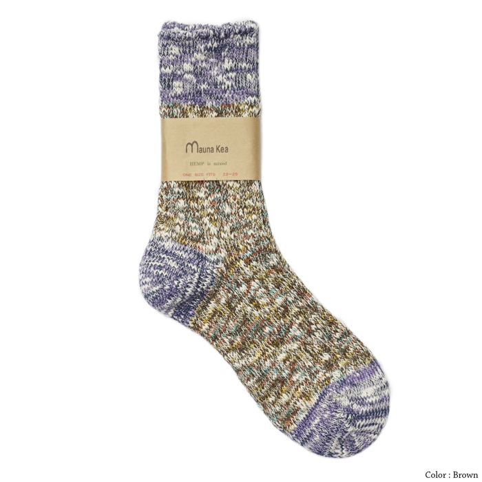 マウナケアならではのざっくりとした雰囲気と、ポップなカラーリングが魅力の上質なソックスは、