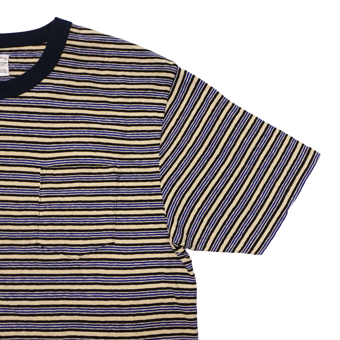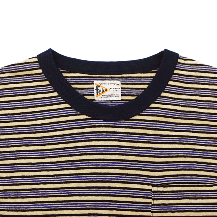 felco(フェルコ) S/S Crew Pocket Tee(S/SクルーポケットTシャツ)”OLD PAPER STRIPE" / Blue Beige×Black Stripe(ブルーベージュ×ブラックストライプ)