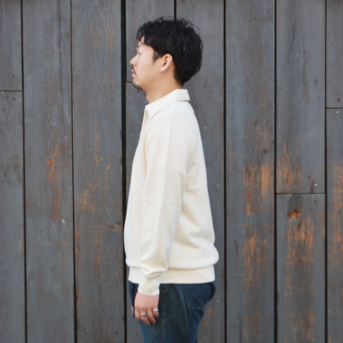 クラシカルな雰囲気が特徴の新作「L/S half Zip Collar Sweat」です。