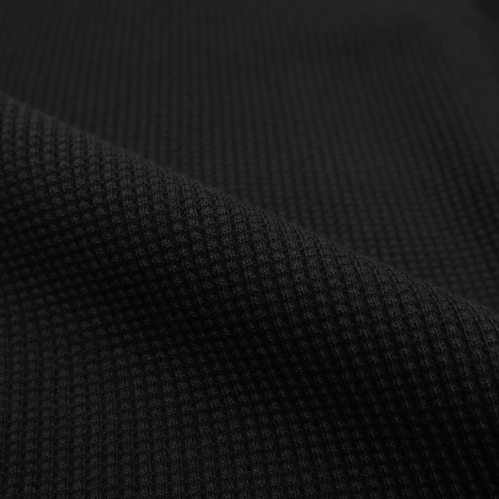凹凸をはっきりとさせたワッフル素材は、無地ながらも表情豊かで適度に空気を含むため優れた保温性を持ち、