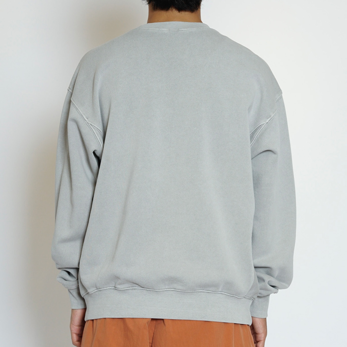 極めてシンプルなデザインと風合い豊かなピグメント・バイオ加工が大変魅力のクルーネックスウェットです。