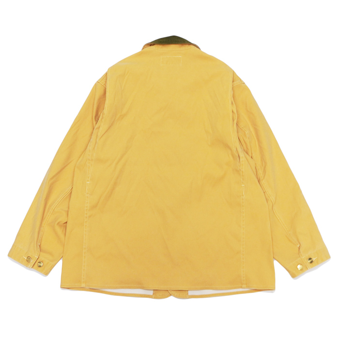襟と袖口のトリムにはコットン100%のコーデュロイ生地を使用し、ヴィンテージさながらの雰囲気を演出。
