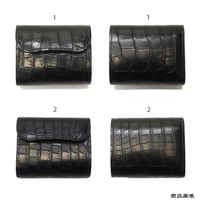 WILD SWANS(ワイルドスワンズ)ENO(イーノ)ミニ3つ折りウォレット/ブラック"クロコダイル"×グリーン"ブッテーロ" [SP-ENO-CRC-BT]