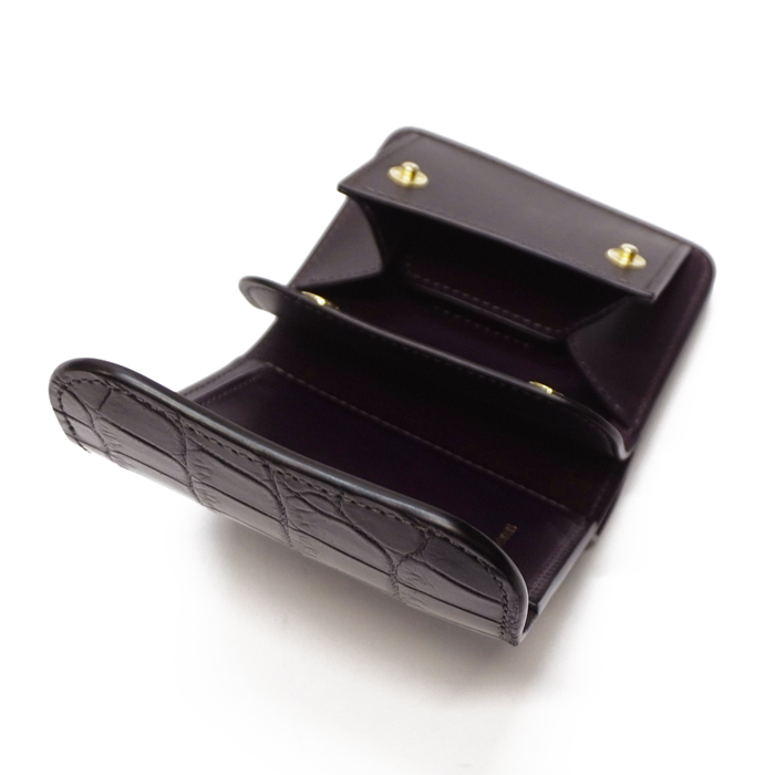 WILD SWANS(ワイルドスワンズ)ENO(イーノ)ミニ3つ折りウォレット/ブラック"クロコダイル"×パープル"ブッテーロ" [SP-ENO-CRC-BT]