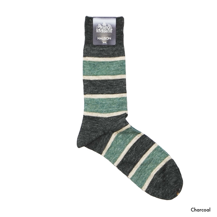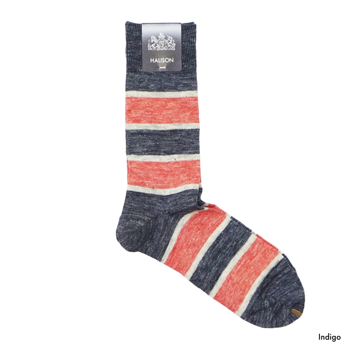 HALISON(ハリソン)リネンラガーボーダーソックス / Charcoal(チャコール)・Indigo(インディゴ)※3足までメール便発送可