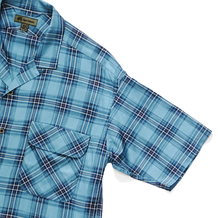 Nigel Cabourn(ナイジェル・ケーボン)OPEN COLLAR SHIRT(オープンカラーシャツ)"RAYON CHECK / BLUE(ブルー)